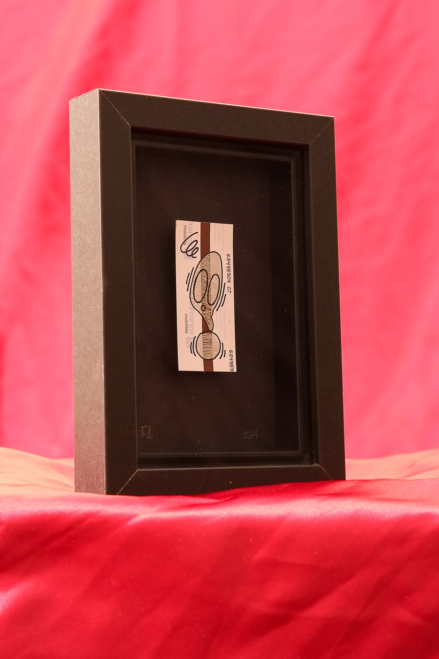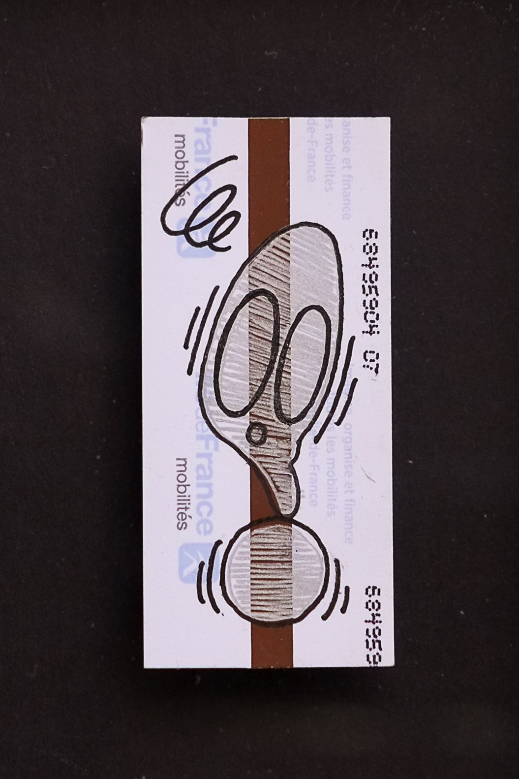 Fantôme sur ticket de métro RATP. Montés flottants sous cadre américain profond de 25 mm. Dimensions globales 17 X 12 X 3 cms.